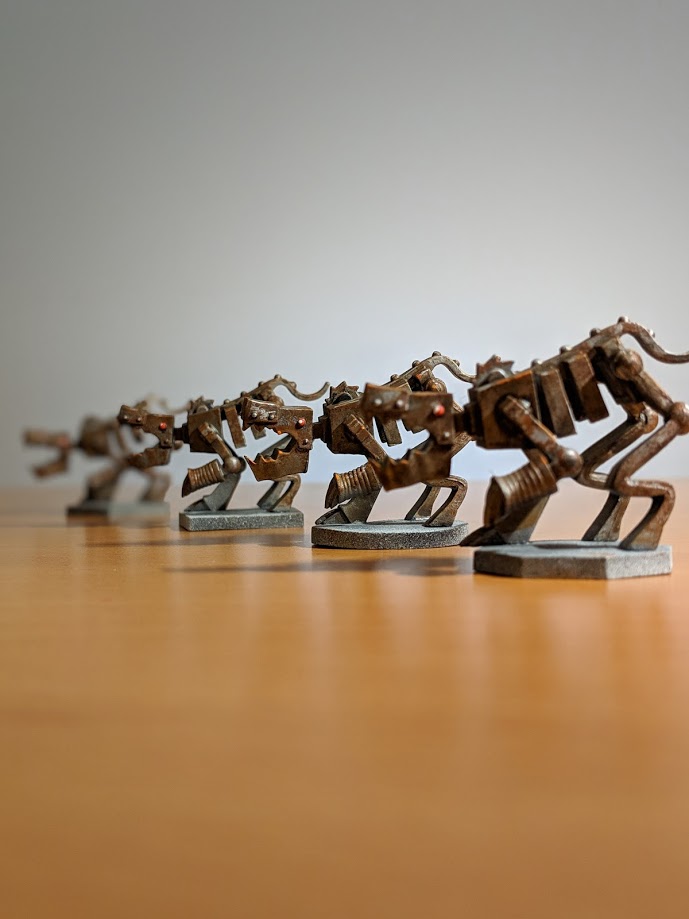 The minions were business as usual. I implemented the rust and dirt effects I learned painting scythe minies. Other than that, it was standard base layer, washes, highlights, dulcote…