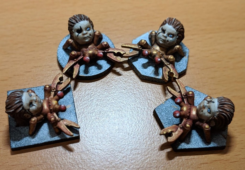 I started off with the snatcher. No tricks beyond rust effects. For dollmaker, I tried to bring zenithal lightning out by using washes to paint. The effect was a bit underwhelming. For Creptius, Skreela I used the same painting with washes technique. It turned out to be grainier than I thought it would be. I thought, grainy look was actually looking good enough and left them like that. One thing I failed at was Skreela’s eyes.