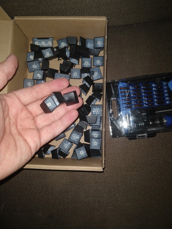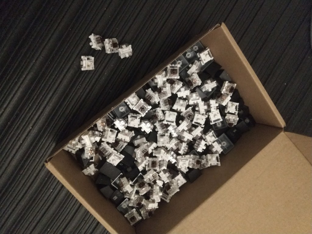 Amazon.de had the switches but wouldn’t deliver to Denmark, and the ones that did deliver was twice the price for the same product. I was starting to get frustrated when I remembered the keyboard I had lying about in a drawer somewhere.
