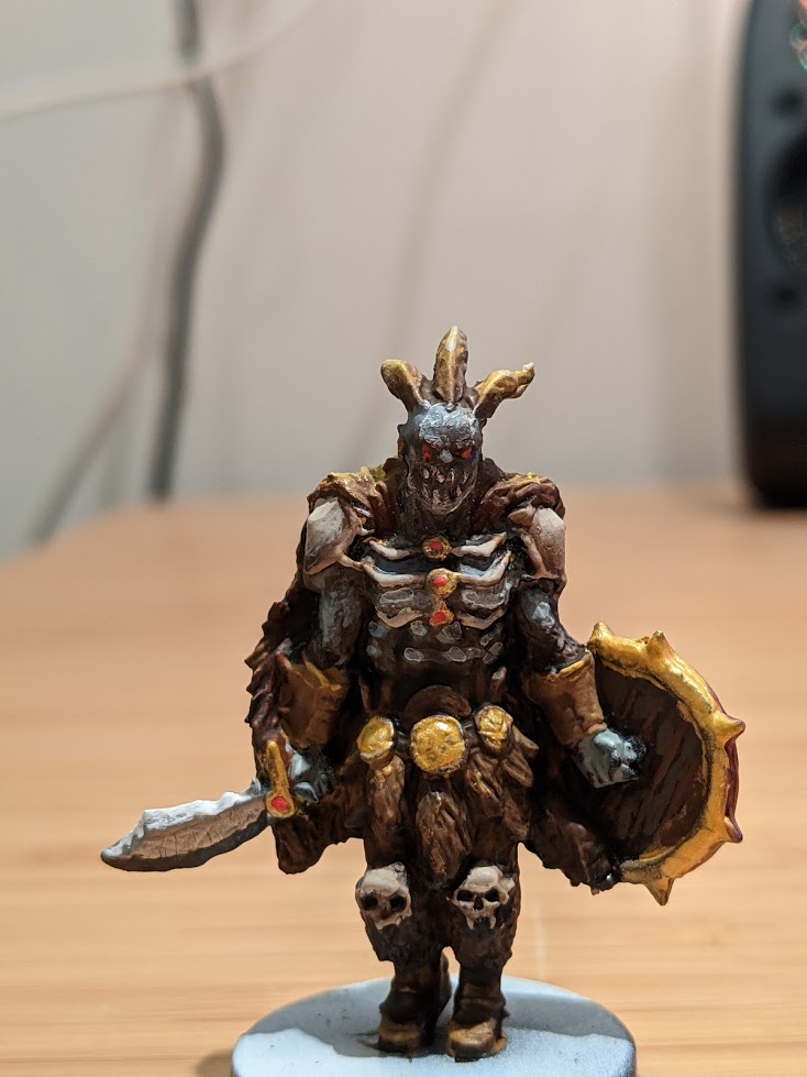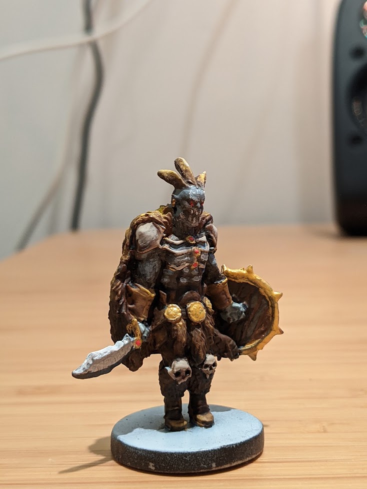 These days my evenings are quite uneventful. So in these lockdown days I am revisiting miniature painting. It also helps that I have Gloomhaven lying about waiting to get painted. So today I sat down and painted the Brute from Gloomhaven. Unfortunately I don’t have progress pictures. I took some pictures before I begin and after I finished.