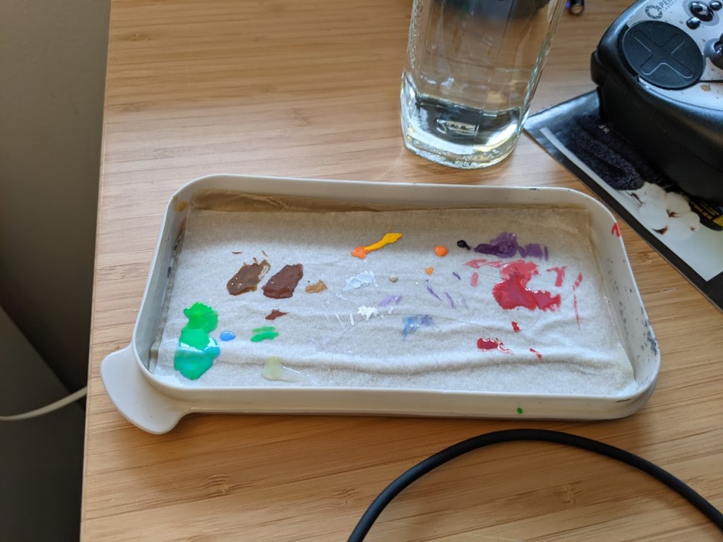 There was some getting used to as some of the paints I used became a bit thinner than I intended. I had to adjust my use of glazing medium to this new reality but I don’t think I am ever going back. In fact I am looking into getting some white Swedish sponge to build a more permanent one going forward.