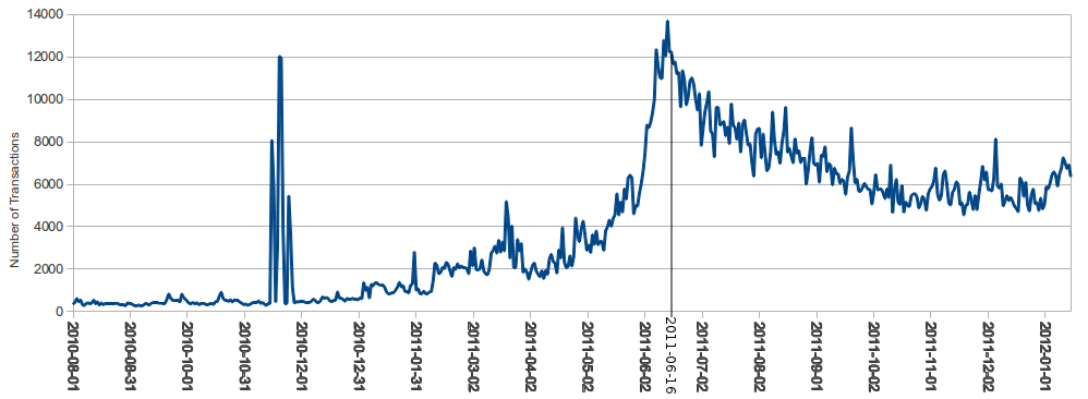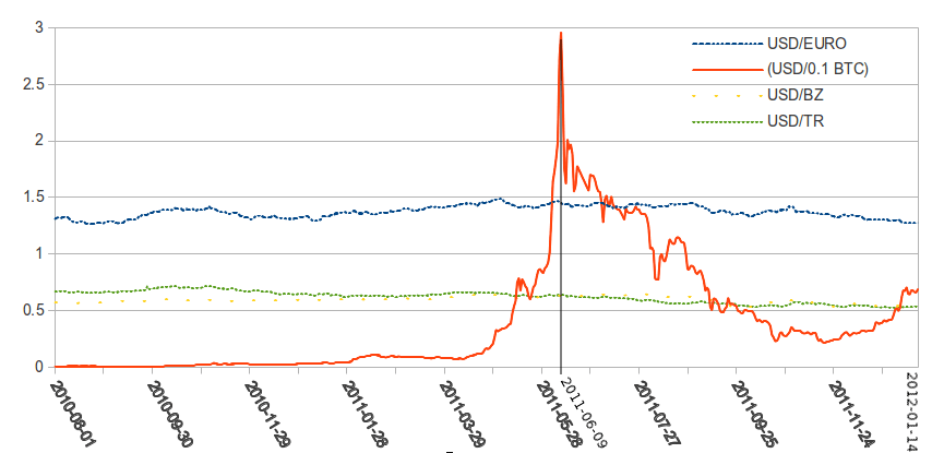 We scraped the exchange rates from bitcoincharts.com and I used Harrigan’s tools to extract the transaction history. The paper’s main conclusion at the time was that BTC did not fulfill the functions of currency. The currency had to be (1) a medium of exchange, (2) a store of value, (3) a unit of account. Bitcoin was not suitable to be a medium of exchange because people were not using it to trade goods and services and in most cases existing payment methods were more performant. It wasn’t a unit of account as the prices posted in BTC fluctuated wildly. The only function was store of value, and that was heavily dependent on someone else being willing to buy BTC when you needed to sell it.