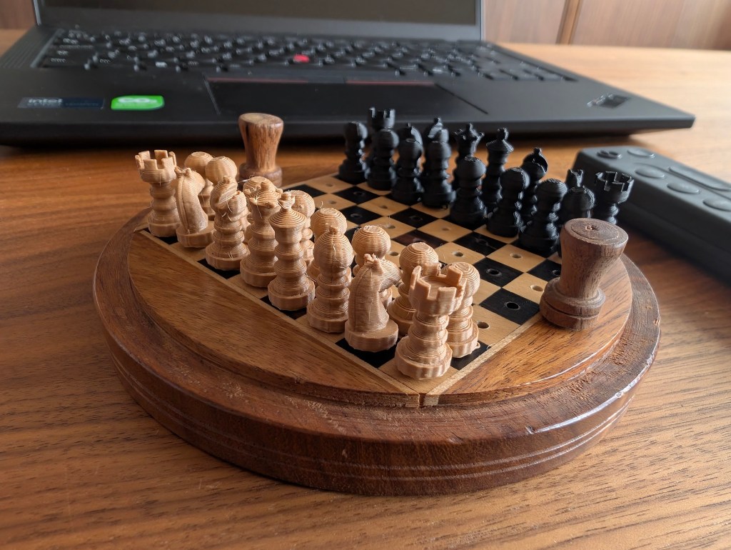 Then came the 3D printing. Pieces being so small printing one color took about 30 minutes. And now I have a functional chess set. I guess it was worth getting the 3D printer in the end.